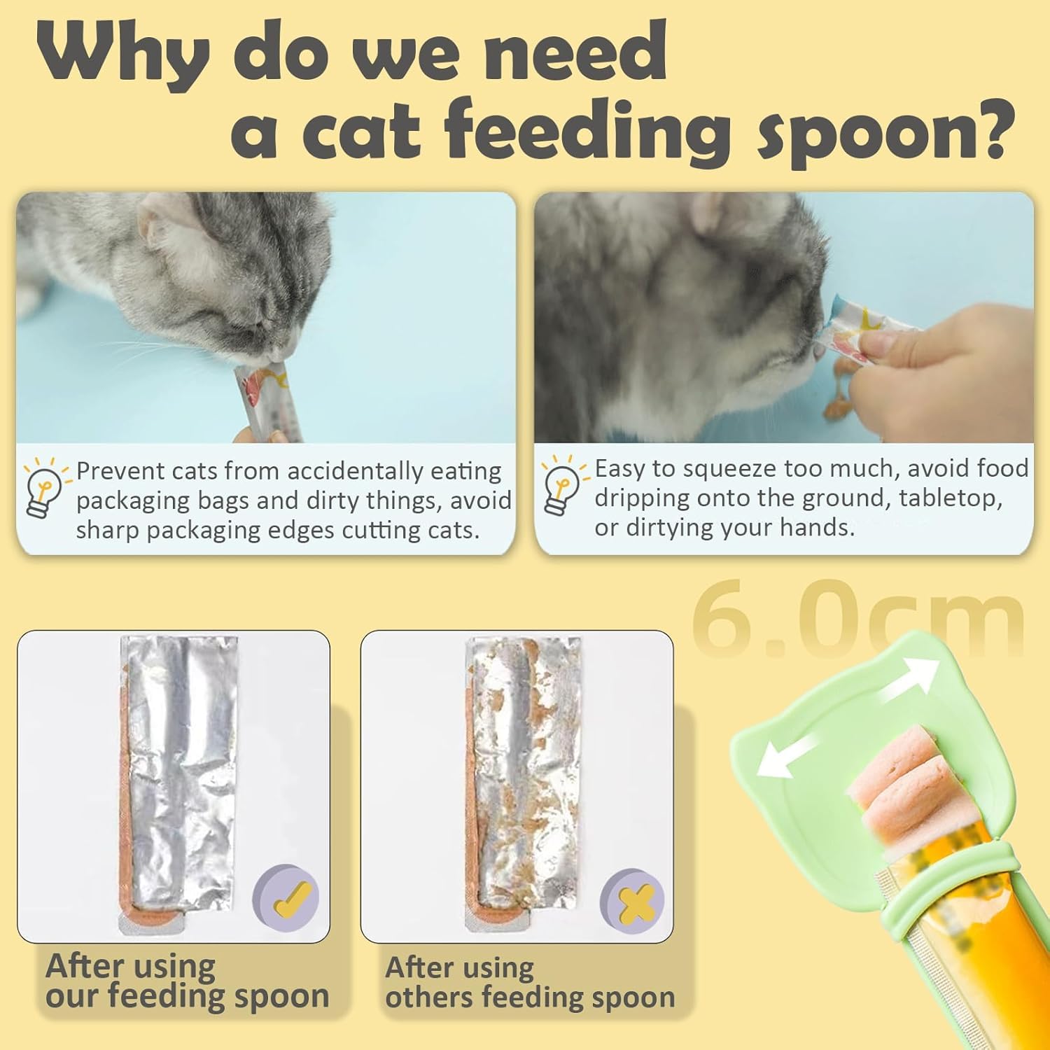 Elevate your cat's mealtime with this innovative, easy-to-use feeding spoon designed for hassle-free dispensing of wet food and treats, fostering a joyful bond between you and your feline friend.